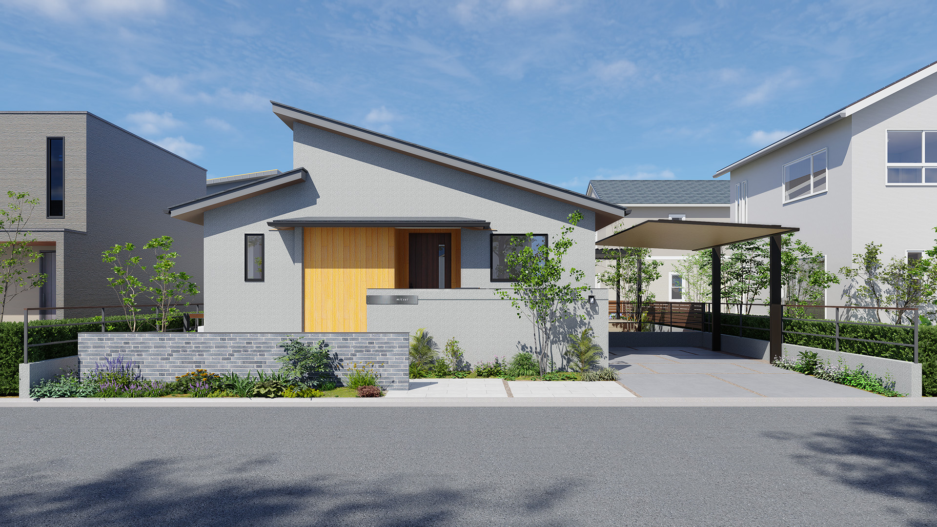 植物好きなお客様にご提案したいのが、年月をかけて育てる「ボタニカルガーデ ン」です。植栽スペースを広く取り、最小限の舗装に留めることで、植物が主役の庭を実現。コンクリートではなく、透水性の高い素材を使用し、植物と人に優しい空間をデザインし、将来的な成長も考慮した設計が特徴です。年月と共に変化し、味わい深くなる庭は、住む人の心を豊かにしてくれるでしょう。